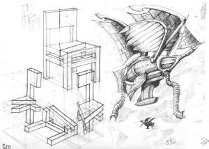 W tym przypadku pomocne będzie również poznanie podstaw geometrii, przede wszystkim podstawowych metod tworzenia obrazów przestrzeni na płaszczyźnie papieru: rzuty płaskie, aksonometria, perspektywa jednozbiegowa i dwuzbiegowa. Ćwiczenia polegające na „obracaniu” obiektu lub bryły wokół osi lub w dowolnym kierunku, rozcinaniu bryły płaszczyzną pod dowolnym kątem, wycinaniu w bryle dowolnej formy czy przenikaniu się brył służą rozwijaniu wyobraźni przestrzennej. Przydatne mogą być również ćwiczenia dotyczące odbicia obiektów w powierzchni lustrzanej (np. w lustrze wody) lub konstruowania cieni (cienie własne i rzucone).