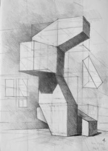 W tym przypadku pomocne będzie również poznanie podstaw geometrii, przede wszystkim podstawowych metod tworzenia obrazów przestrzeni na płaszczyźnie papieru: rzuty płaskie, aksonometria, perspektywa jednozbiegowa i dwuzbiegowa. Ćwiczenia polegające na „obracaniu” obiektu lub bryły wokół osi lub w dowolnym kierunku, rozcinaniu bryły płaszczyzną pod dowolnym kątem, wycinaniu w bryle dowolnej formy czy przenikaniu się brył służą rozwijaniu wyobraźni przestrzennej. Przydatne mogą być również ćwiczenia dotyczące odbicia obiektów w powierzchni lustrzanej (np. w lustrze wody) lub konstruowania cieni (cienie własne i rzucone).